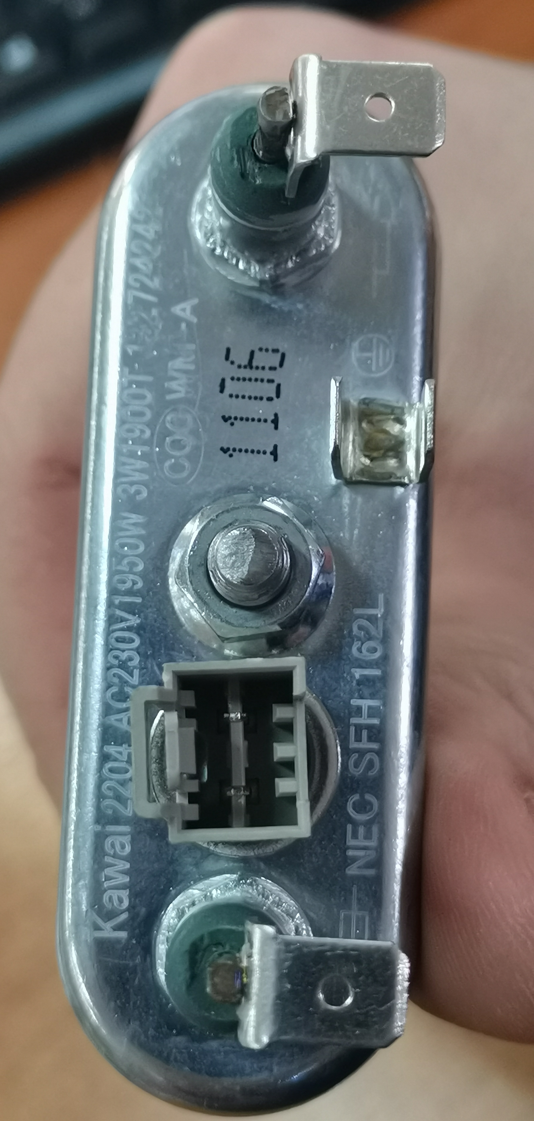 `00201329 <=ТЭН 1950W-230V (прям.с отв.L=225, R9+, M185, F28, K2 +датч.4.8kom) 'Kawai' ELUX-1326730403, 1327242309, 3792301305, зам. HTR021ZN, WA553t, `00201295