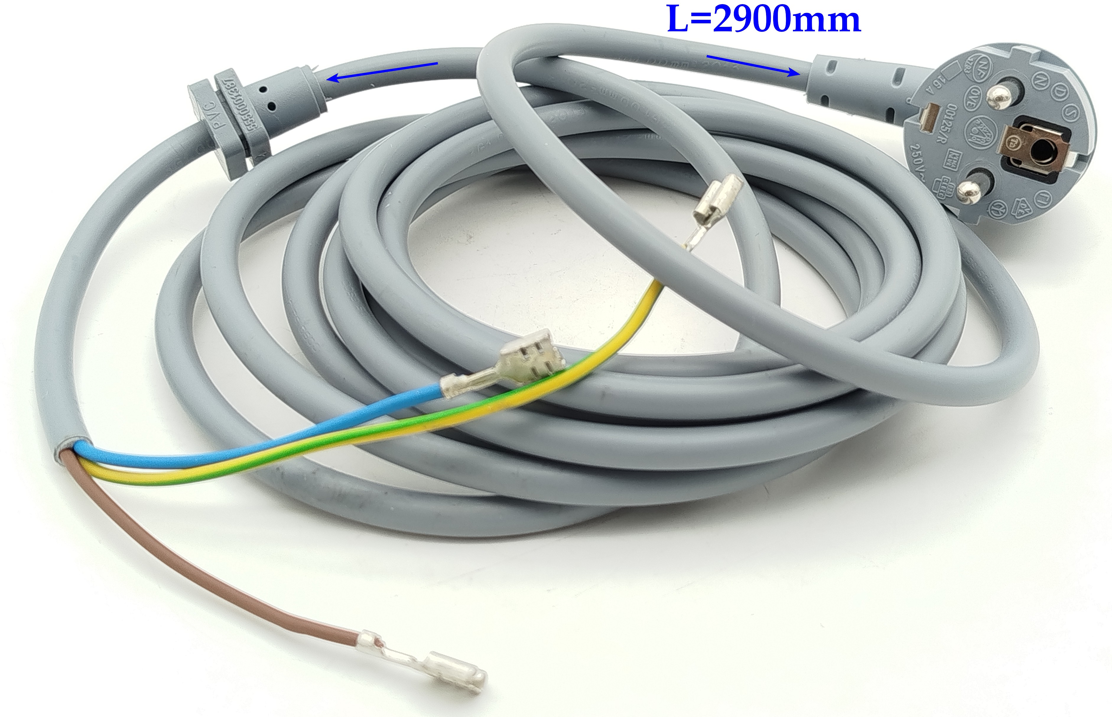 Сетевой кабель L~2900mm зам. 00481580, 00627704, 00622880, 00495835, 00469773, 00460719, ??00266722?, 5500000247